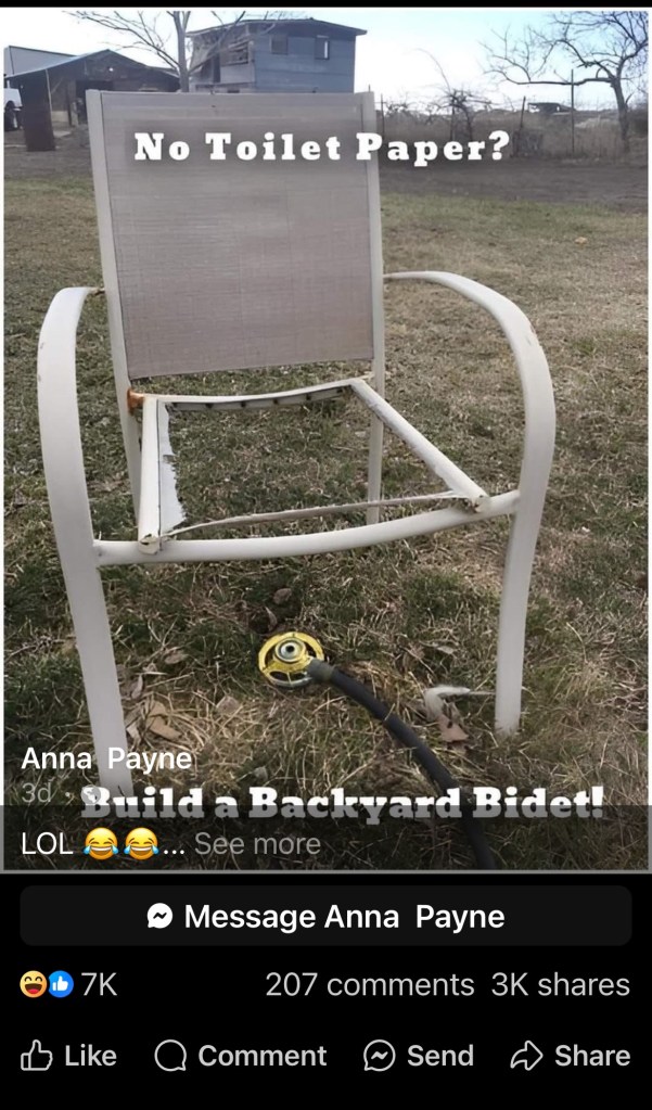 7: how Parkinson’s has effected my cognitive awareness. It’s gotten so bad I now have to wear a hat every time I sit on a toilet, just to remind me what end I have to wipe!